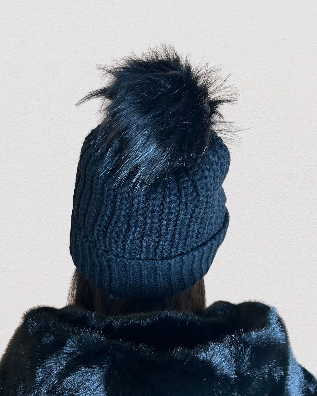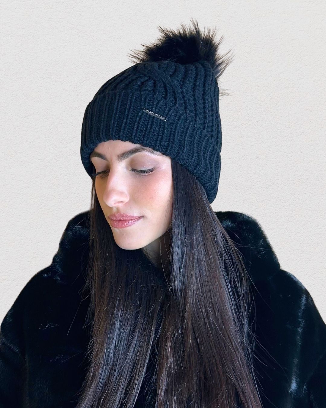 Berretto in Maglia con Maxi Pompon in Pelliccia SinteticaDesign Invernale: Berretto caldo in maglia a coste, ideale per le giornate più fredde.Dettaglio Trendy: Decorato con un voluminoso e morbido maxi pompon in pelliccia sintetica tono su tono.Vestibilità Confortevole: La lavorazione a maglia garantisce elasticità e una vestibilità aderente e confortevole.Stile Versatile: Perfetto per completare outfit casual e sportivi, ma anche per aggiungere un tocco glam ai look invernali.Colore: Nero classico, facile da abbinare.