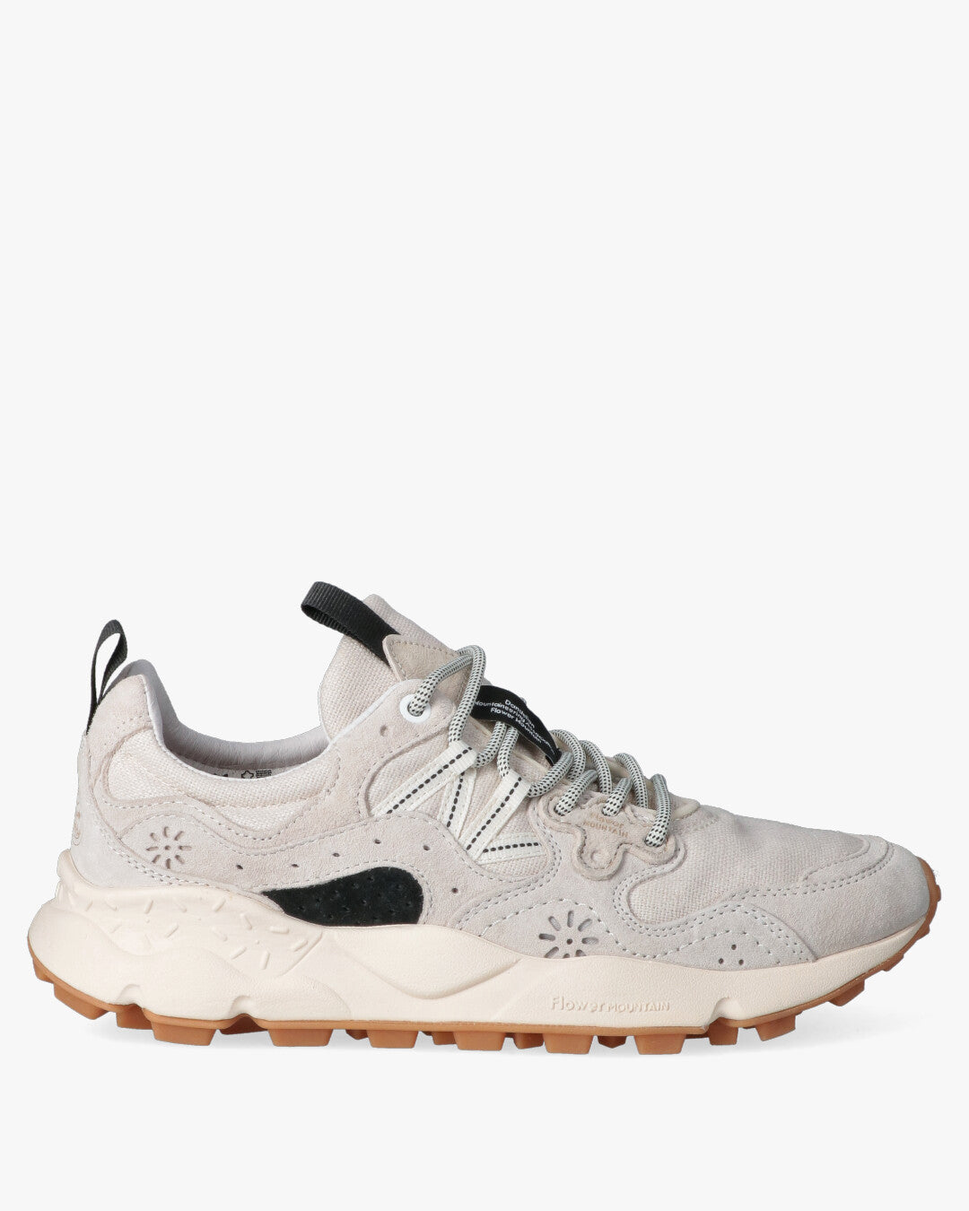 Suede and cotton upper. Leather and fabric lining. Removable cork insole. Rubber sole.
