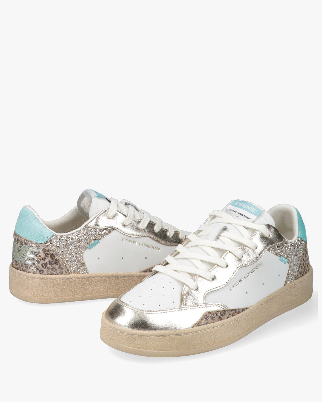 Chelsea MulticolorUn mix audace di texture e finiture che fonde l'estetica urban con dettagli luxury. Perfette per chi non vuole passare inosservato, queste sneakers combinano pelle bianca premium, riflessi laminati e accenti animalier in un design contemporaneo e versatile.Dettagli ProdottoDesign Multimateriale: Tomaia in pelle bianca con inserti in pelle laminata platino, tallone in suede azzurro pastello e dettagli glitterati.Accenti Animalier: Spoiler posteriore e inserti laterali con stampa leopardata per un carattere grintoso.Branding Iconico: Logo Crime London impresso lateralmente e patch sulla linguetta con claim It's a London thing.Comfort Premium: Fodera interna morbida e soletta rimovibile per una calzata ottimale per tutto il giorno.Suola Durable: Suola a cassetta in gomma color beige sabbia (altezza circa 3 cm) con cuciture a vista per una maggiore resistenza.Materiale e CuraMateriale esterno: Pelle e TessutoRivestimento: Pelle e TessutoSoletta: PelleSuola: Gomma resistente all'abrasionePunta: TondaChiusura: Lacci piatti in cotone biancoConsiglio di stile: Abbinale a un denim mom-fit e una t-shirt basic per lasciare che le scarpe siano le protagoniste, oppure indossale sotto un abito midi per un contrasto ultra-cool.