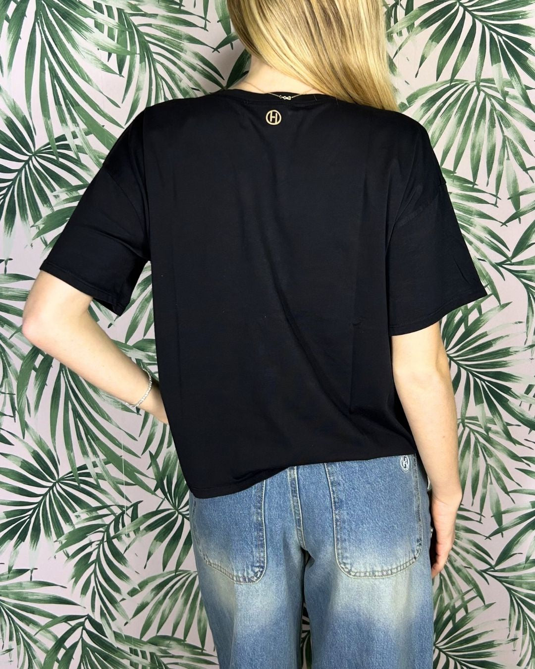 Basic Essential T-Shirt - Black Lightweight, breathable cotton jersey fabric. Classic V-neck and regular short sleeves. Small circular logo printed on the back of the neck. Fit: Regular / Easy fit. Style Tip: The perfect basic piece for layering your everyday outfits.