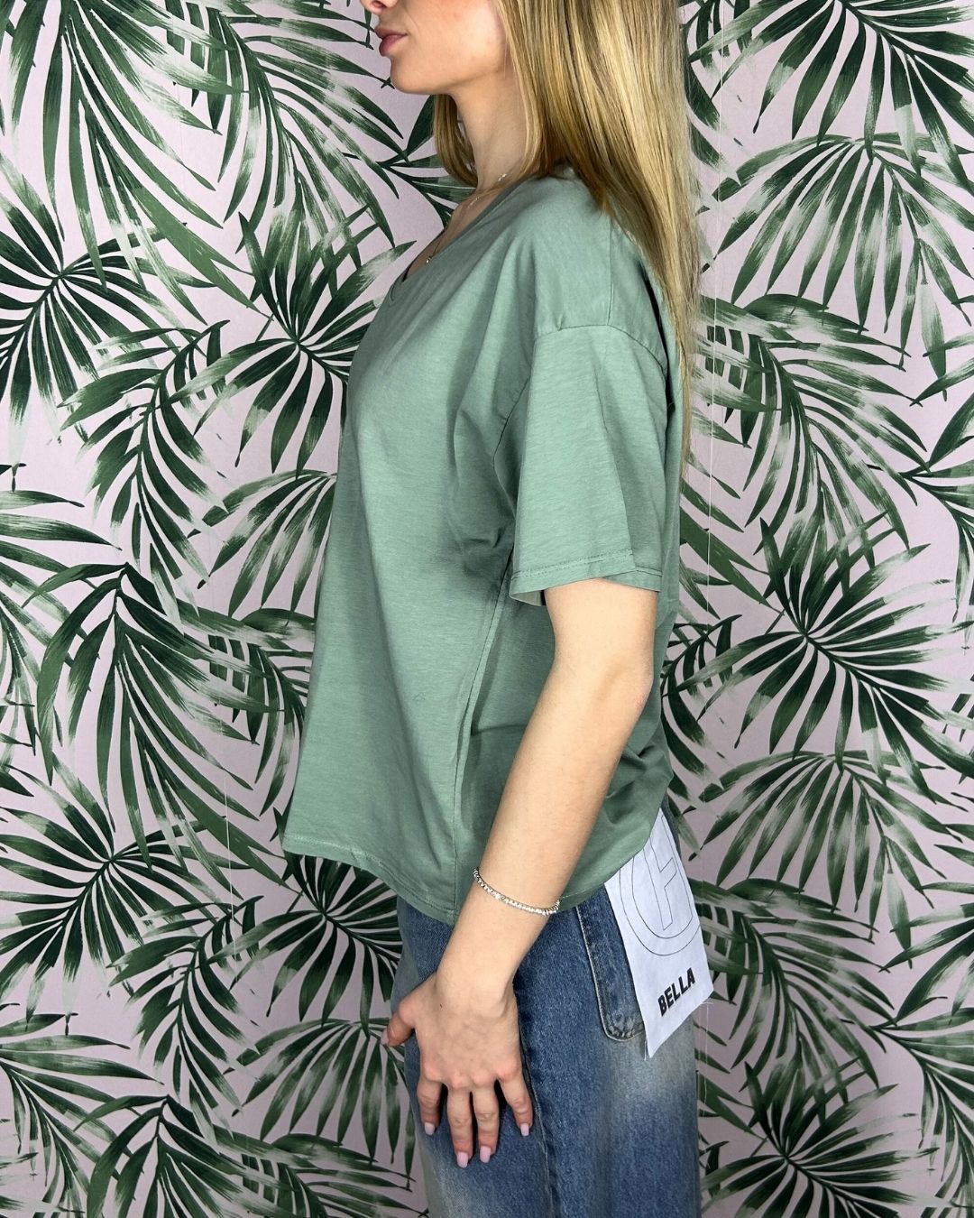 Basic Essential T-Shirt - Sage Lightweight, breathable cotton jersey fabric. Classic V-neck and regular short sleeves. Small circular logo printed on the back neck. Fit: Regular / Easy fit. Style Tip: The perfect basic for layering your everyday outfits.