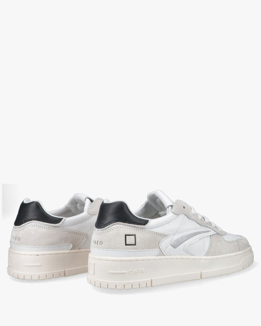 Torneo Low White-BlackEstetica Multidimensionale: Tomaia in pregiata pelle bianca con inserti tecnici e dettagli in suede grigio chiaro per un design stratificato d'ispirazione basket-vintage.Dettagli di Contrasto: Talloncino posteriore in pelle nera che aggiunge un tocco grafico e deciso alla silhouette neutra.Loghi Distintivi: Iconico logo quadrato impresso lateralmente e scritta TORNEO visibile sul retro.Suola Urban Platform: Suola a cassetta in gomma color crema con battistrada dentellato per un'aderenza superiore e uno stile street-wear moderno.Caratteristiche TecnicheMassima Traspirabilità: Punta traforata per favorire la ventilazione interna e mantenere il piede fresco.Comfort Interno: Fodera realizzata in un mix di pelle e spugna di cotone per una calzata morbida e confortevole tutto il giorno.Sostegno Anatomico: Plantare interno estraibile e rialzato di circa 2,5 cm per migliorare la postura e l'ammortizzazione.Chiusura Custom: Lacci piatti in cotone bianco coordinato.Consigli di StileMood: Una sneaker versatile che unisce l'anima sportiva degli anni '90 alla cura artigianale italiana.Abbinamento: Perfetta da indossare con pantaloni relaxed-fit, chinos o un abito dal taglio sartoriale per un contrasto urbano e sofisticato.
