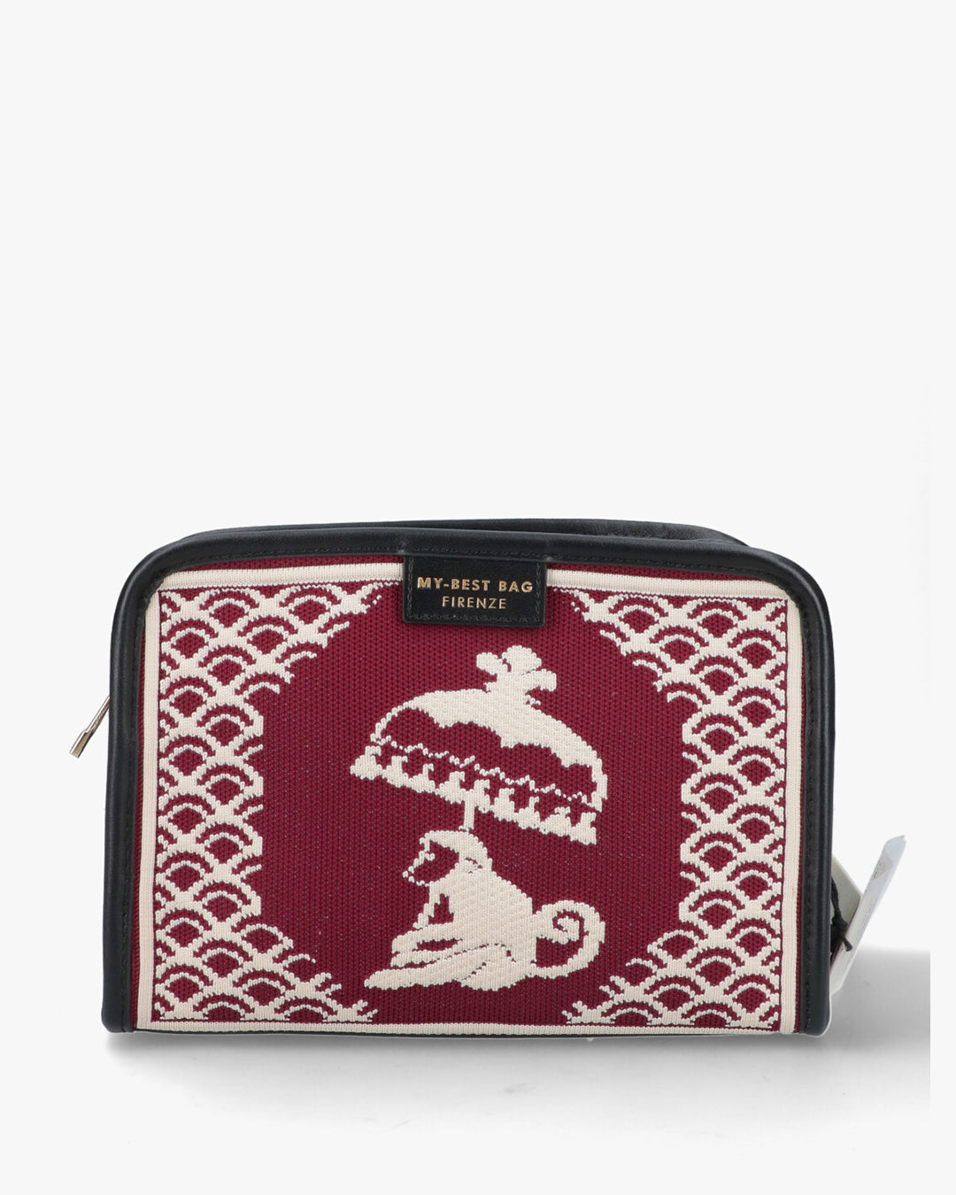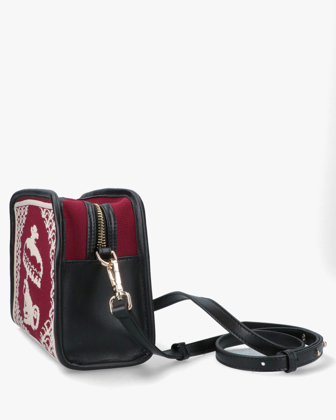 Dimensions: 22X16X8 cm. Double shoulder strap, one in fabric and one thin in leather.