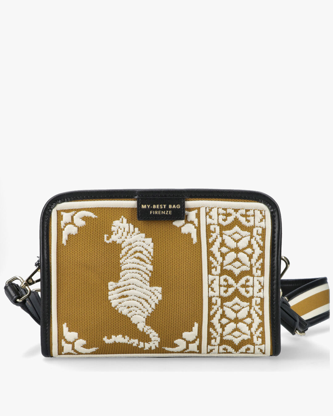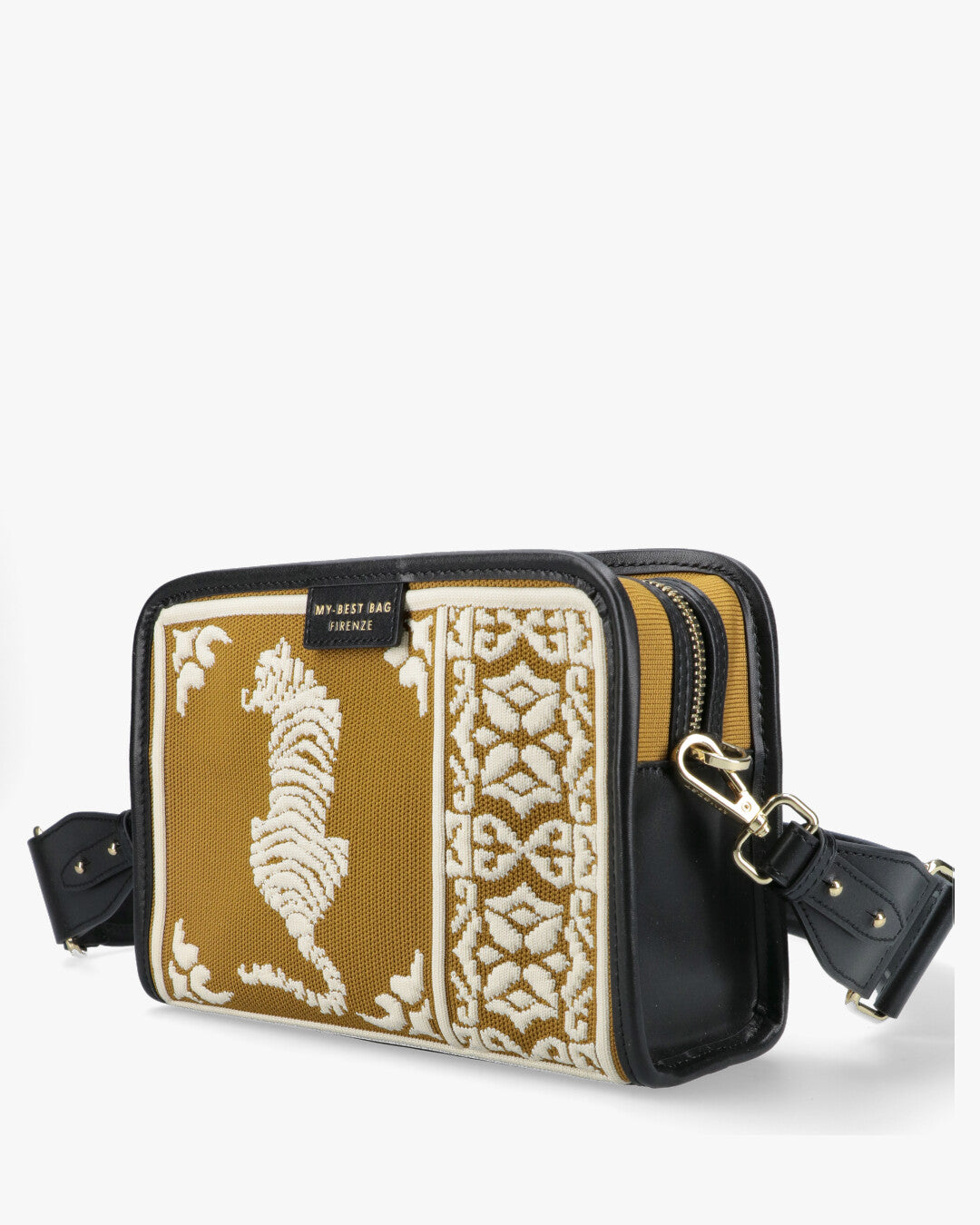 Dimensions: 22X16X8 cm. Double shoulder strap, one in fabric and one thin in leather.