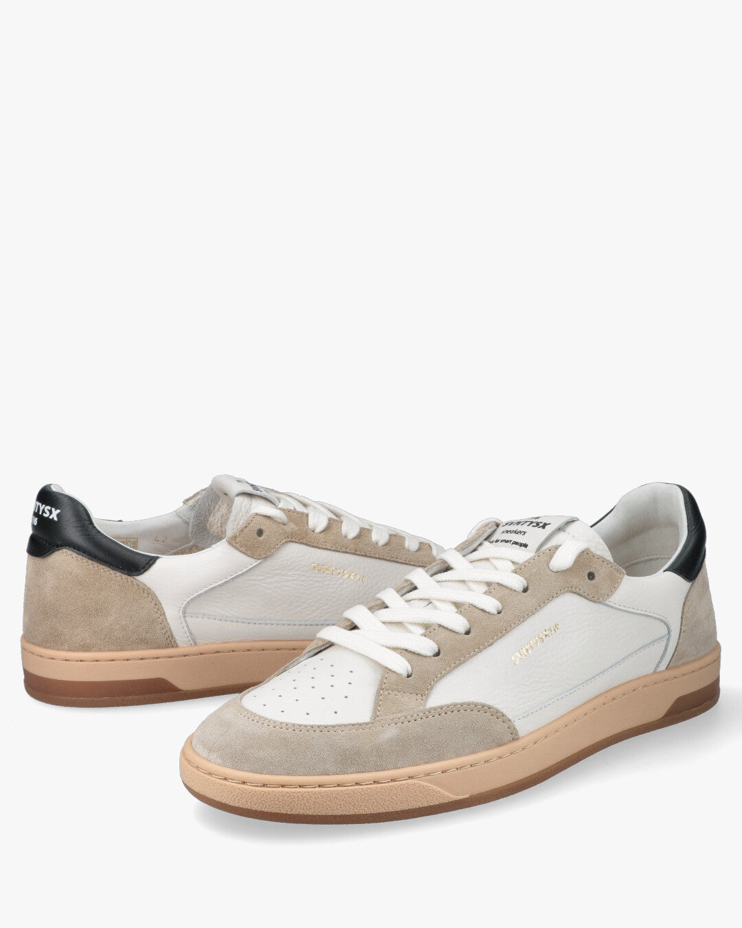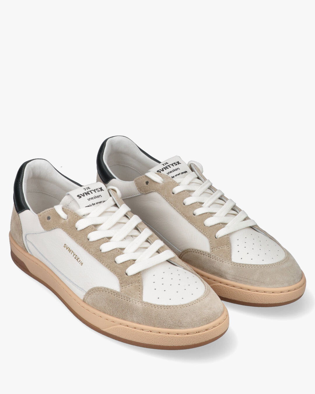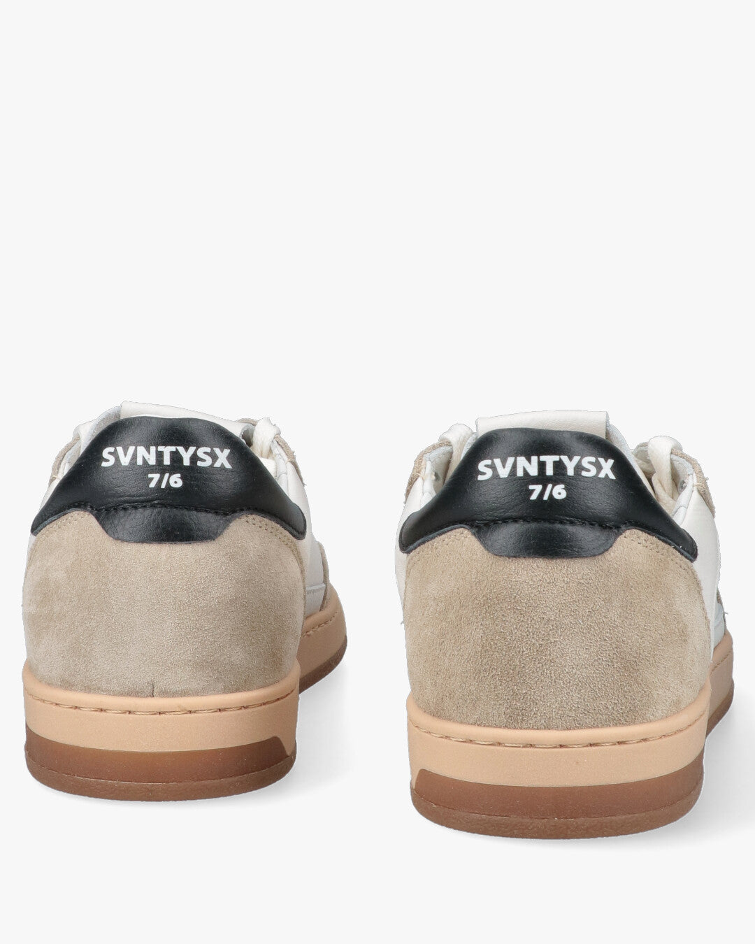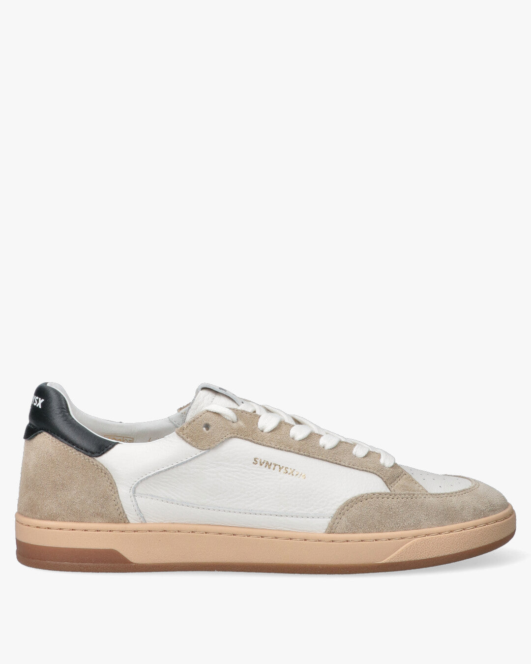 Sneaker SVNTYSX 7/6 -Urban Retro StyleEleva il tuo stile quotidiano con la sneaker SVNTYSX 7/6, un perfetto equilibrio tra estetica vintage e design contemporaneo. Caratterizzata da una silhouette low-top d'ispirazione basket anni '80, questa calzatura è realizzata con materiali premium per garantire comfort e durevolezza.Design Multimaterico: Tomaia in pregiata pelle bianca con inserti in suede grigio fango e talloncino in pelle nera a contrasto.Dettagli Iconici: Logo dorato SVNTYSX 7/6 impresso lateralmente e branding ricamato sulla linguetta e sul tallone.Comfort & Grip: Suola cupsole in gomma bicolore color miele e marrone, progettata per un'ottima trazione e una resistenza superiore.Versatilità: Il look minimalista ma ricercato la rende ideale sia per outfit casual con denim, sia per spezzare un look più formale.Caratteristiche principali:Tomaia in pelle e camoscio.Punta traforata per una migliore traspirabilità.Fodera interna morbida.Interamente rifinita a mano.