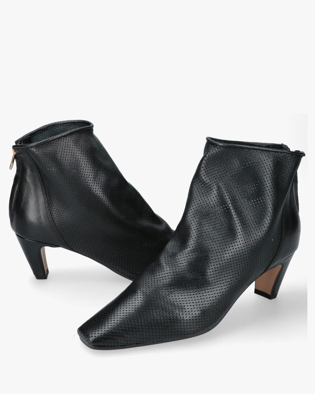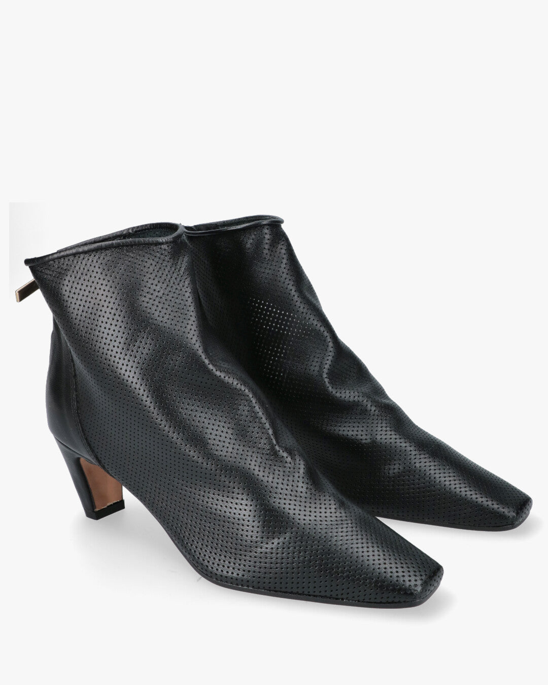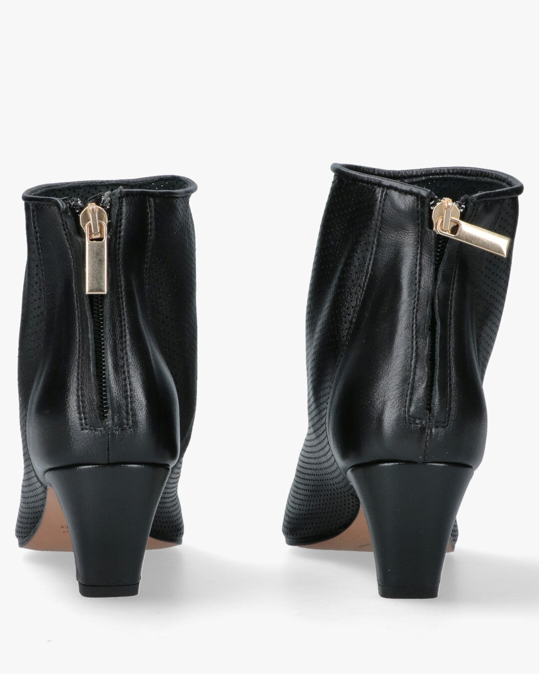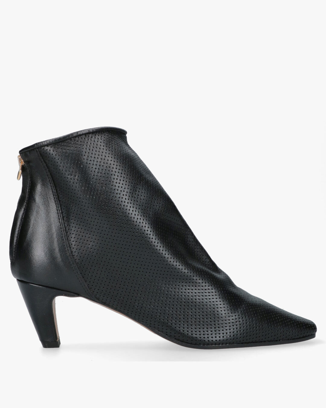 Bianca Di Stivaletto Pointed Nero PerforatoDesign moderno: stivaletto alla caviglia dal taglio essenziale con silhouette a punta che conferisce un aspetto slanciato e grintosoPelle lavorata: tomaia in morbida pelle nera caratterizzata da una raffinata micro-perforazione all over che assicura traspirabilita e uno stile distintivoChiusura funzionale: pratica zip posizionata sul tallone con tirante dorato a contrasto per una calzata facile e veloce senza rinunciare all esteticaTacco bilanciato: tacco medio a cono che garantisce stabilita e comfort ottimale per un utilizzo quotidiano o seraleDettagli di qualita: finiture artigianali Made in Italy con interno e sottopiede in pelle per la massima morbidezzaVersatilità stagionale: la lavorazione traforata lo rende ideale per le stagioni di transizione abbinandosi perfettamente sia a denim che ad abiti leggeri