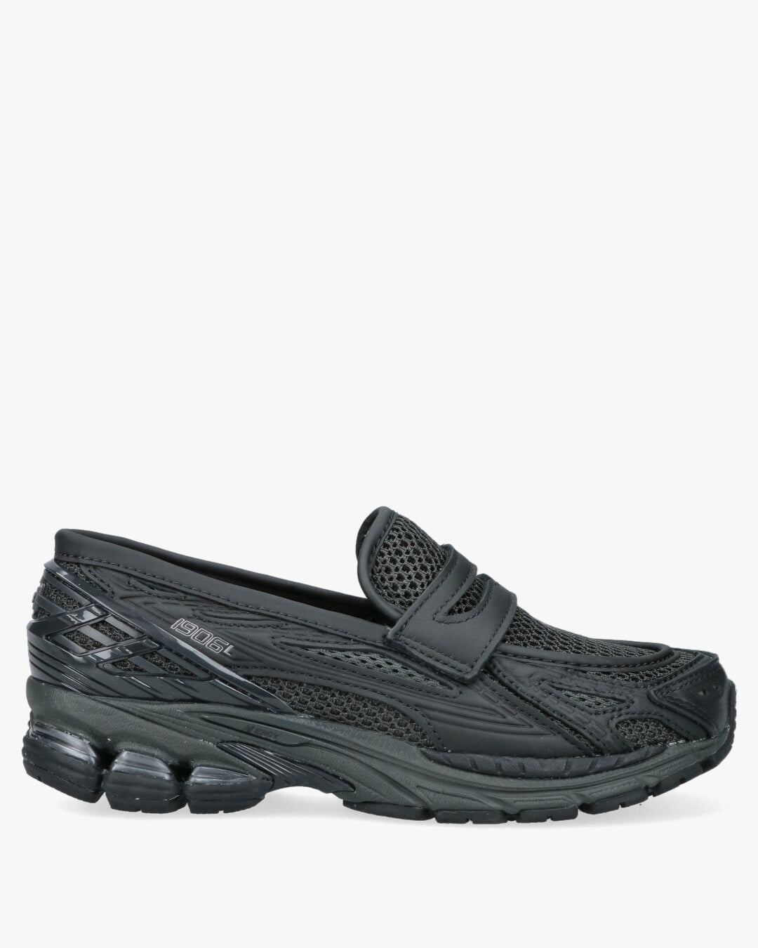 Le New Balance 1906L ridefiniscono il concetto di calzatura ibrida, fondendo l'estetica tecnica del running anni 2000 con la silhouette sofisticata di un mocassino. Questa versione total black trasforma un'icona sportiva in un elemento di design d'avanguardia, perfetto per chi cerca un look audace e versatile.Dettagli del prodotto:Design Ibrido Innovativo: Struttura slip-on ispirata al modello loafer classico, integrata su una base tecnica da performance running.Tomaia Multi-Texture: Mix di mesh traspirante e sovrapposizioni in materiale sintetico nero lucido per un gioco di contrasti dinamico.Fascia Penny Loafer: Il tipico dettaglio trasversale dei mocassini è reinterpretato in chiave tech con l'iconico logo N centrale.Ammortizzazione Avanzata: Intersuola dotata di tecnologia ABZORB e N-ergy per un assorbimento degli impatti superiore e un comfort costante.Supporto Stability Web: Supporto mediale nell'arco plantare che garantisce stabilità e previene la torsione durante la camminata.Specifiche tecniche:Punta: Tonda con rinforzo strutturale.Chiusura: Senza lacci (slip-on) per una calzata rapida ed elegante.Suola: In gomma nera resistente con design scanalato per un grip eccellente.Colore: Black / Anthracite. Numerazione Uomo