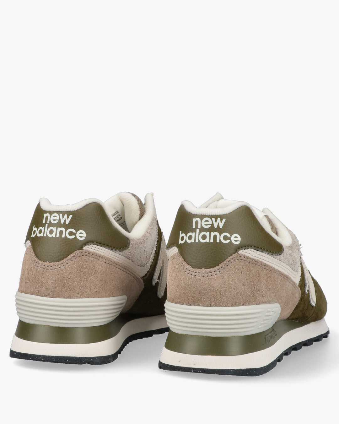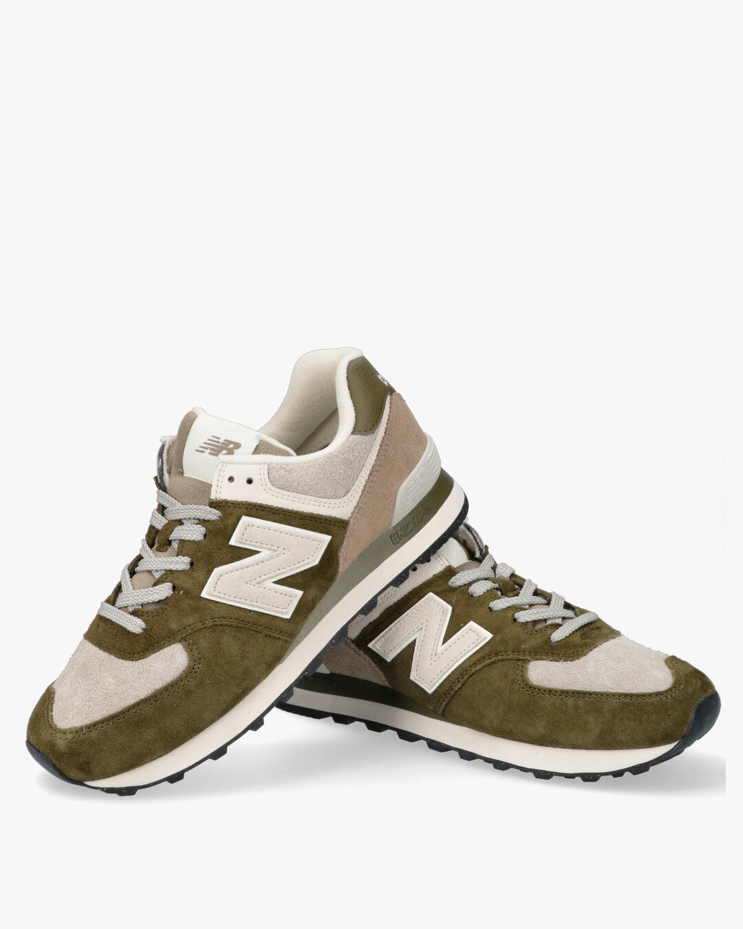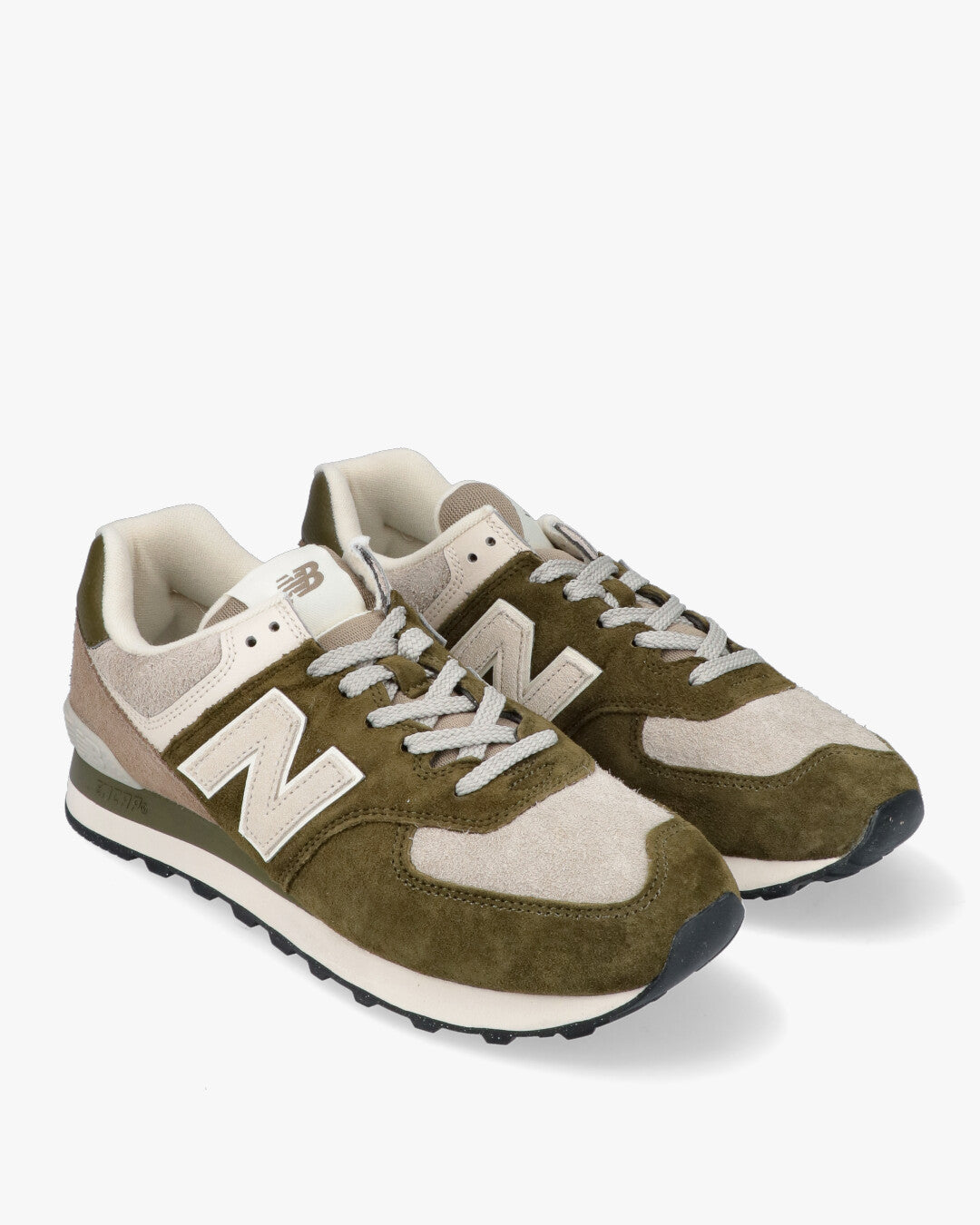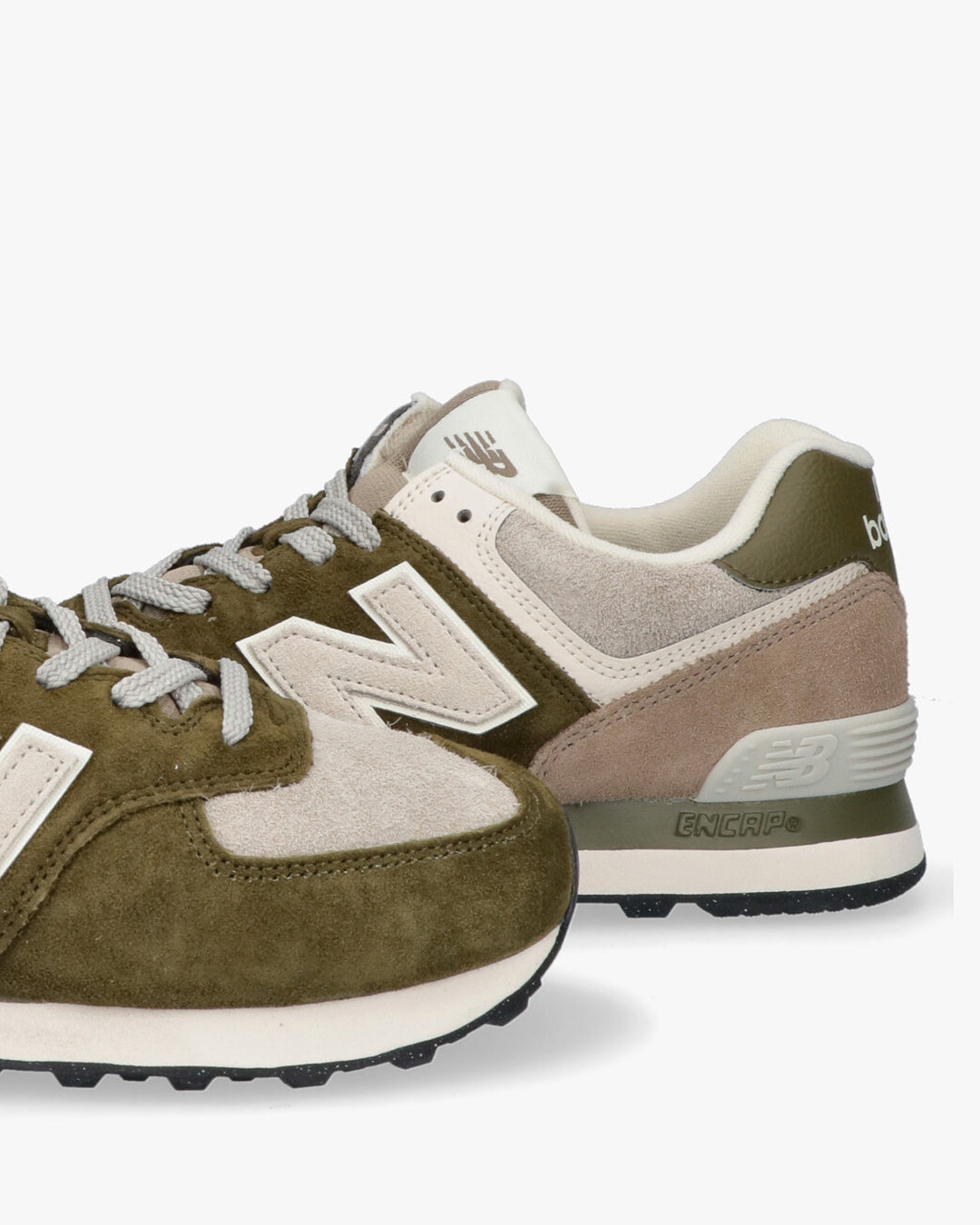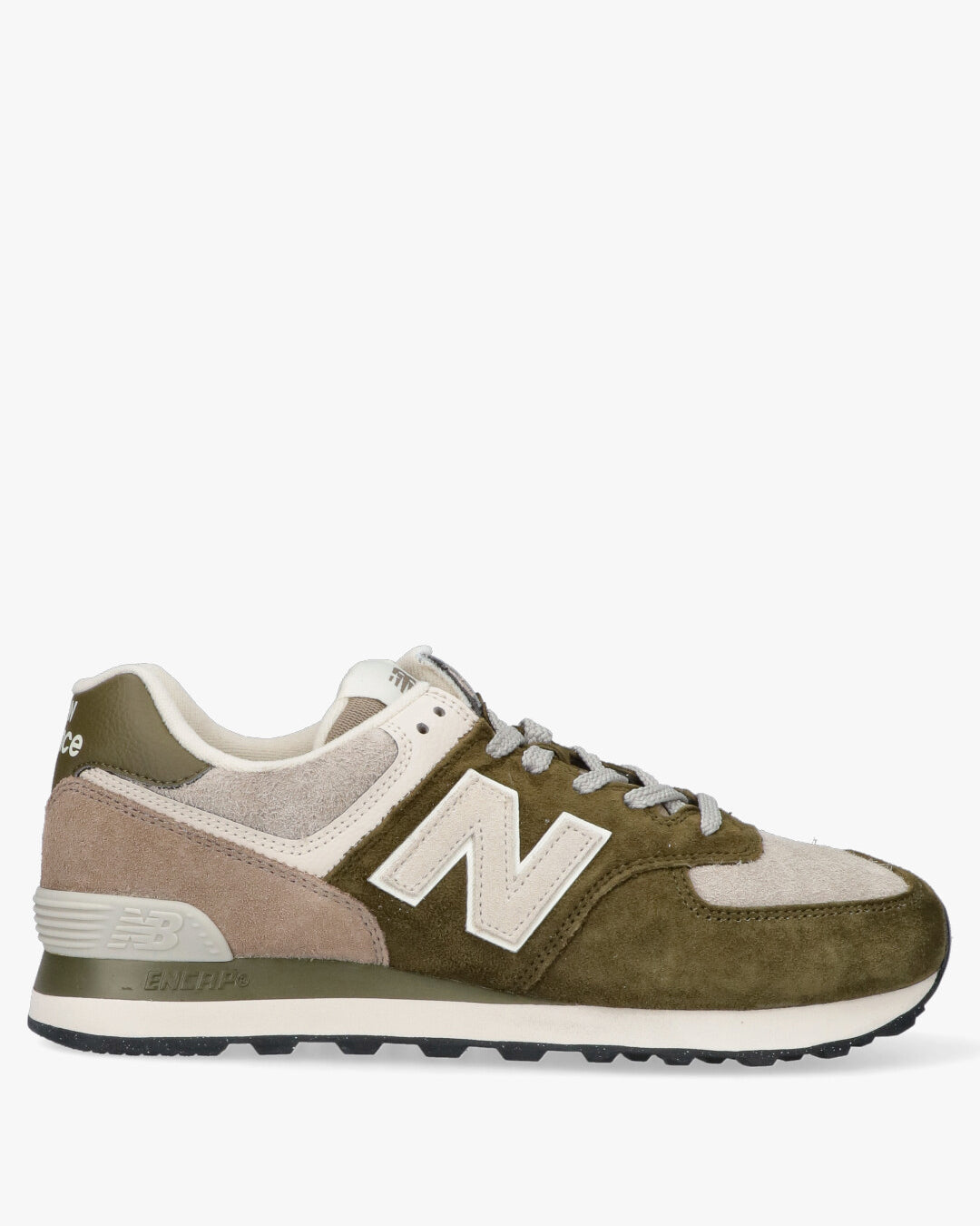 Modello: New Balance 574 (Iconico modello heritage).Materiali: Tomaia in suede (camoscio) e inserti in mesh/tessuto.Colorazione: Multicolore con prevalenza di tonalità terrose (Verde Oliva, Beige, Marrone Chiaro).Ammortizzazione: Tecnologia dell'intersuola ENCAP che combina schiuma morbida e un bordo in poliuretano resistente per supporto e durevolezza.Logo: Iconico logo a contrasto sul lato.Stile: Design classico da running rivisitato per il lifestyle, perfetto per l'uso quotidiano.Suola: Suola in gomma resistente con battistrada strutturato per trazione.Ideale per: Un look casual, athleisure e per aggiungere un tocco retrò al proprio outfit.
